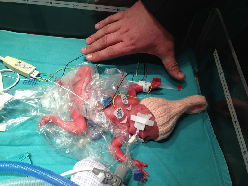 Our Madison Grace was born on the 8th of August 2013, at the gestation of 23 weeks and 5 days, weighing 595 grams and right on the very edge of viability. The laws of our country say that only 26 weeks gestation or 800 grams is viable, so it she had been born at a government hospital she would not have been saved. Dr Boden gave her a 50% chance of survival because she was born crying and pink, which is basically unheard of at that gestation – feisty and “declaring” herself from the very beginning!!